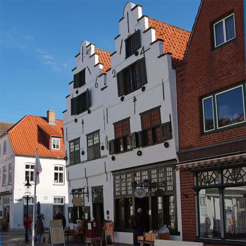 eine reihe von treppengiebelhäusern bestätigte nun den holländereinfluß deutlich. In jeder dieser zauberhaften gassen findet man sie und für mich war klar, daß ich dieses in eine kleine geschichte fassen mußte. Nachgelesen erfahre ich, daß die stadt schon 1621 gegründet wurde. Zur Zeit des Herzog friedrich der lll von schleswig-gottorf war es, als sich glaubensflüchtlinge aus holland hier ansiedelten. Die remonstranten mußten ihre heimat dordrecht in holland wegen ihrer lehre über die willens- und glaubensfreiheit des menschen verlassen. In friedrichstadt besitzen sie heute noch ihre damals errichtete kirche und damit ihre einzige remonstrantengemeide deutschlands.